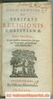 HUGO GROTIUS DE VERITATE RELIGIONIS CHRISTIANae. Editio Novissima, In qua ejusdem Annotationes suis quaeque Paragraphis ad faciliorem usum subjaectae sunt. [Marke "Minerva", Typ IV bei Willems (S. XCIII) und präziser "M. 17" bei Rahir. In Rot: "HUGO GROTIUS", "RELIGIONIS", "Editio Novissima,", "AMSTELODAMI," und "MDCLXXV."] AMSTELODAMI, (Amsterdam), Ex Officina Elseviriana [Daniel Elzevir], MDCLXXV (1680). 1 (weißes) Blatt, 6 Blätter, 396 Seiten, 1 (weißes) Blatt. Auf Rücken und Deckeln blindgeprägtes Lederbändchen über vier falschen Bünden. Rotes, goldgeprägtes Titelrückenschild. Marmorierte Vorsätze und allseitiger Rotschnitt. (13,4 x 8,2 cm, bzw. 12,8 x 7 cm; Buchblock: 1,6 cm) 12°. Vergl. Bérard S. 102 f (Die Ausgabe von 1662). Pieters 492 auf S. 314. Willems 1582. Winterthur 496. Vergl. Brunet V, col. 1725. Goldsmid II, 63. Rahir 1740. Berghman 162. Copinger 2006. Broman 518. Motteley (1824) 182. Costabili 1952. Lengfeld'sche 529. Lengertz 313. Kraus 87. Phiebig 314. EHC 12.1680.Gro.00. Weddigen 069.