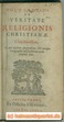 HUGO GROTIUS DE VERITATE RELIGIONIS CHRISTIANae. Editio Novissima, In qua ejusdem Annotationes suis quae- /que Paragraphis ad faciliorem usum subjaectae sunt. [Marke "Minerva", Typ IV bei Willems (S. XCIII) und präziser "M. 17" bei Rahir. n Rot gedruckt: "HUGO GROTIUS", "RELIGIONIS", "Editio Novissima,", "AMSTELODAMI", "MDCLXII."] AMSTELODAMI, (Amsterdam), Ex Officina Elzeviriana [Louis und Daniel Elzevir]. MDCLXII (1662). 6 Blätter, 408 Seiten. Auf Rücken und Deckeln blindgeprägter Lederband mit ehemals rotem, goldgeprägten Titelrückenschild. (13,3 x 8,3 cm, bzw. 13 x 7,2 cm; Buchblock: 2,3 cm) 12°. Bérard 102 f. ("L'édition de 1662 passe pour la plus belle et la plus recherchée ..."). Pieters 304 auf S. 290 (" "). Willems 1288 ("Cette édition est la première et la plus recherchée des cinq que les Elzevier ont données de ce livre. Daniel l'a réimprimée ligne pour ligne en 1669, en 1674 et en 1675, puis avec une pagination différente en 1680. Bérard, et après lui M. Pieters et Brunet, citent sans la décrire une édition qui aurait paru à Amsterdam, chez Louis Elzevier en 1640. C'est positivement une erreur. Il existe en effet une édition sous cette date, mais elle a été publiée à Leyde par J. Maire. La preuve que Louis Elzevier y est demeuré étranger, c'est que le De veritate religionis christianae ne figure pas dans les catal. offic. de 1649 et 1656."). Minzloff S. 107. Winterthur 493. Vergl. Brunet V, col. 1725 ("La seconde [diese ! CS] de ces cinq éditions est la plus belle."). Goldsmid II, 62 f. Rahir 1325. Berghman 158. Copinger 2002. Motteley (1824) 180. Montaran 21. Drouot (1946) 280. Phiebig 314. EHC 12.1662.Gro.00 + 01. Weddigen 066.