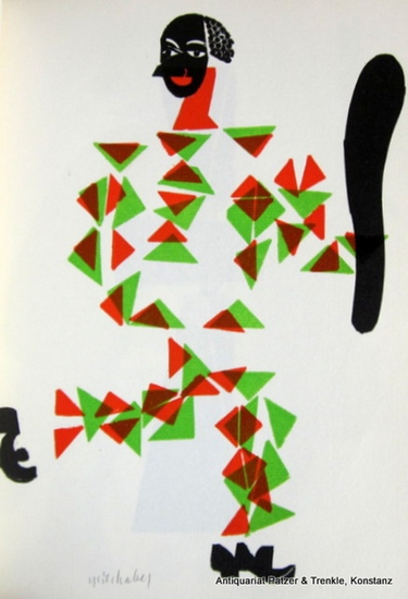 Der große Garten Mit einem Text von Friedrich Rasche. (Hannover, Fackelträger-Vlg. Schmidt-Küster, 1965). Fol. (35,5 : 24,4 cm). Mit 16 (15 farbigen) Original-Holzschnitten von HAP Grieshaber u. 17 s/w Fotografiken von Herbert Schwöbel. 36 Bl. Illustrierter Original-Halbleinenband mit Holzschnittillustration; Rücken etwas gebräunt. Fürst 65/82-99. - Nummer 3 von 50 Exemplaren der Vorzugsausgabe mit 13 von Grieshaber signierten Original-Farbholzschnitten (Gesamtauflage 900). Die Holzschnitte zeigen Figuren der Commedia dell'arte. Das Werk ist eine Hommage an den "Großen Garten" in Herrenhausen zu seinem 350jährigen Bestehen. - Gutes, sauberes Exemplar.